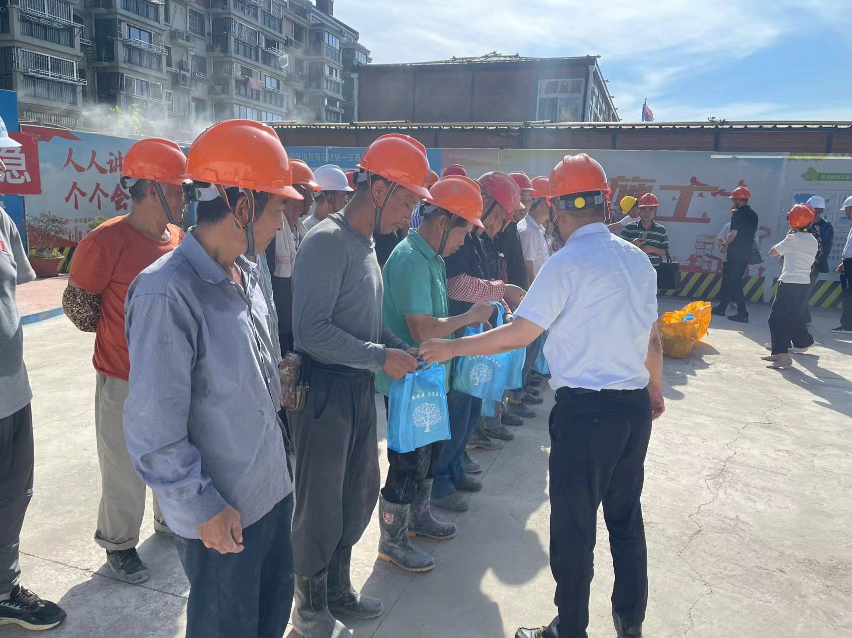 呂軍云一行來到堰頭安置房施工現(xiàn)場,看望慰問一線工人代表,感謝他們?yōu)槌鞘薪ㄔO(shè)作出的貢獻,希望大家注意防暑降溫、保重身體。他要求施工單位嚴(yán)格落實防暑降溫相關(guān)規(guī)定和勞動保護措施,科學(xué)安排戶外作業(yè)時間,確保施工安全和工程質(zhì)量,保障勞動者的身體健康和生命安全。
